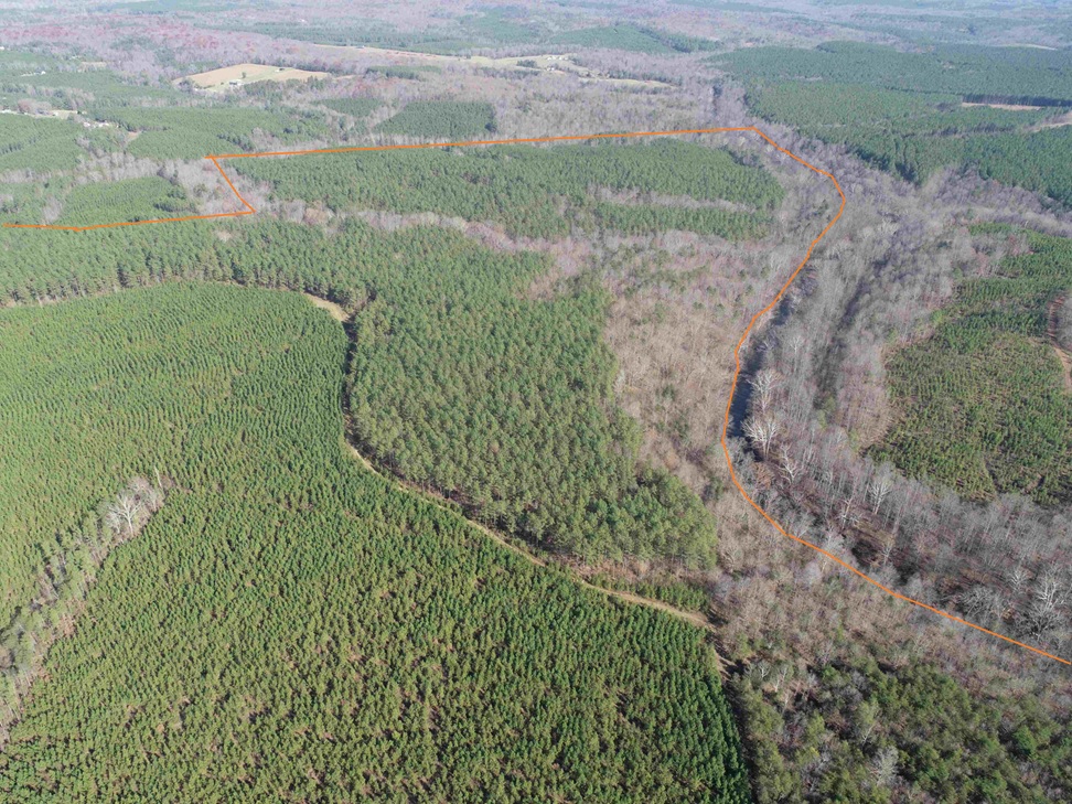 The Tanager ET2 2023 Tract spans 262 acres south of Taggart, accessible via a prescriptive easement from Diana Mill Road. The land features gentle rolling terrain, bordered to the south by the Slate River. It includes 99 acres of 1990 Loblolly pine, 101 acres of 2018 Loblolly pine, and 60 acres of mature hardwoods. This tract offers both solid timber investment potential and strong recreational opportunities.